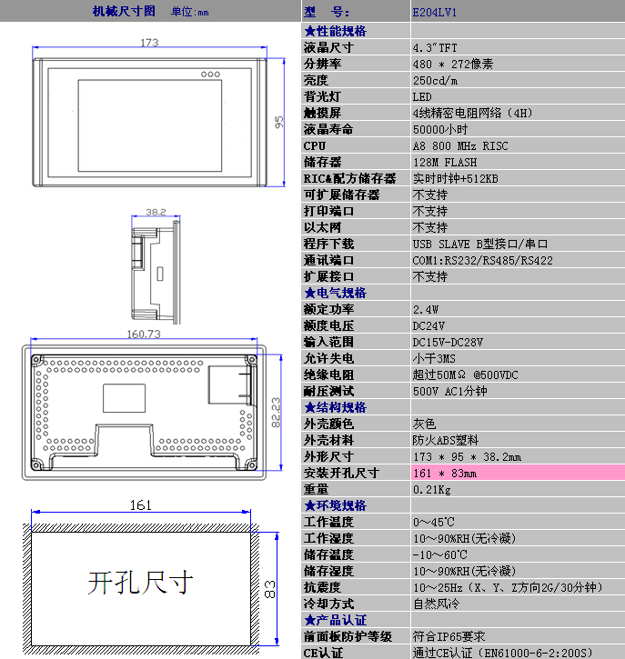 彩色触摸屏 E204LV1