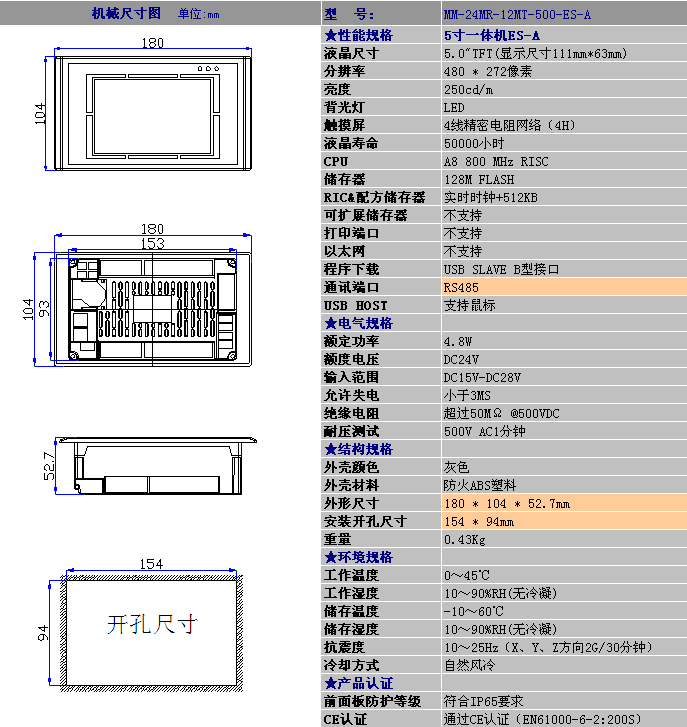 彩色触摸一体机 4.3寸一体机 MM_24MR_12MT_500_ES_A