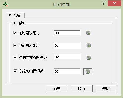 PLC控制,即PLC控制画面的切换、用户等级的更改、更改配方、写入配方的操作。