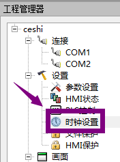 时钟设置分为把系统的时间下载到HMI中、写时间到PLC和与PLC同步这三大功能。