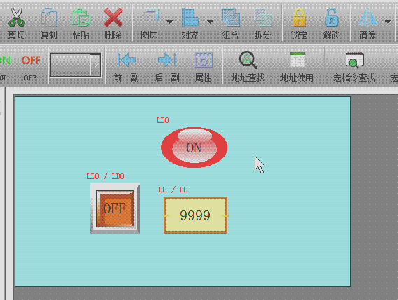 在创建完毕工程后,开始设计组态界面,绘制好图形后,可以选中单个或多个图形,进行锁定/解锁操作, 锁定后将无法移动和调整大小,解锁后才能恢复移动和调整大小。 锁定图形之后,图形左上角会有一个小锁标识,表示此图形已经被锁定,无法移动和调整大小