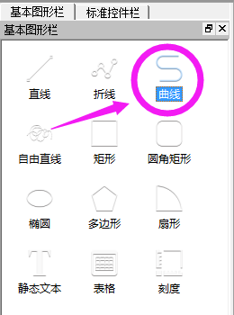 1、打开软件之后,点基本图形栏,左键单击"曲线",绘图区单击左键,即可添加: