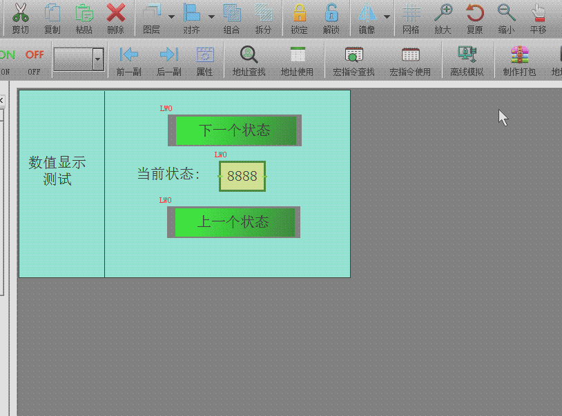 数值显示的作用:用来显示一个字地址,比如三菱或台达D区等寄存器的数值,以十进制、十六进制或八进制显示在触摸屏上。
