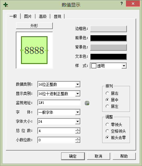 显示有效位数前面的0,即如果监视地址的数据是16位正整数且总位数为4位,当其值为0123,在显示框内显示的数据为0123。