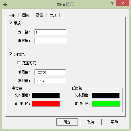 当选择了“范围可变”时,“低限值”和“高限值”由用户所输入的地址存储的数值决定。