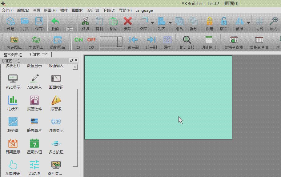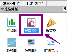 1、点击标准控件栏中的“报警控件”,在右侧绘图区点击左键即可添加图形,如下图: