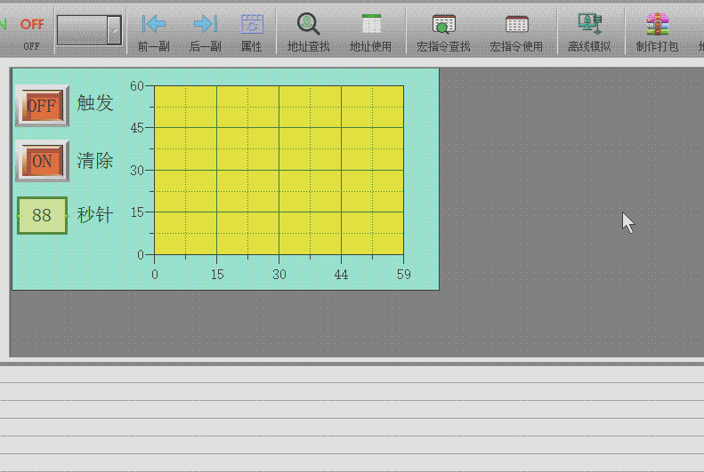 所关联的清除位PLC地址,即当此地址触发为1的时候,趋势图将清除曲线记录,上图为LB1(