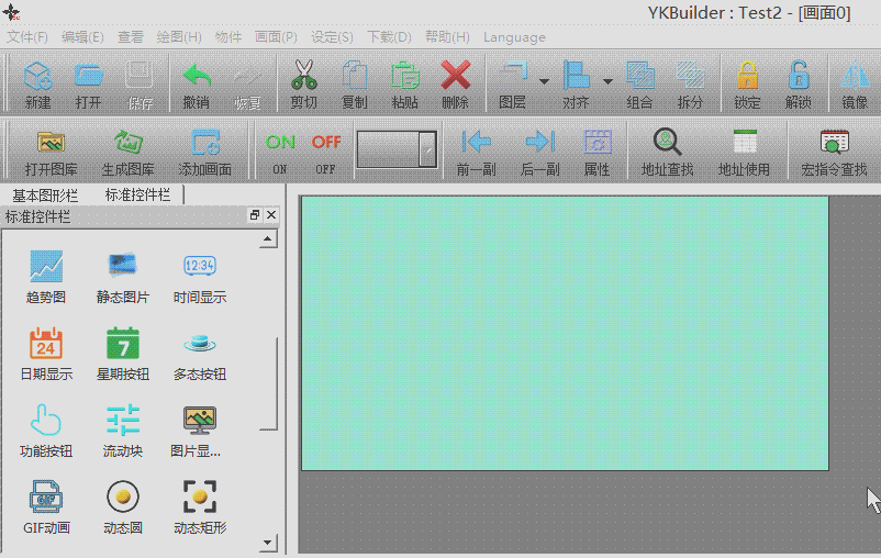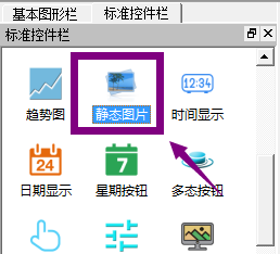 1、点击标准控件栏中的“静态图片”,在右侧绘图区点击左键即可添加图形,如下图: