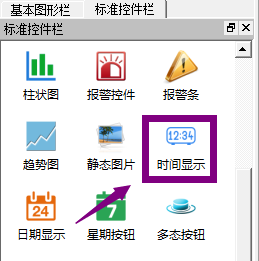 1、点击标准控件栏中的“时间显示”,在右侧绘图区点击左键即可添加图形,如下图: