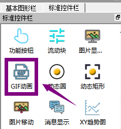 1、点击标准控件栏中的“GIF动画”,在右侧绘图区点击左键即可添加图形,如下图: