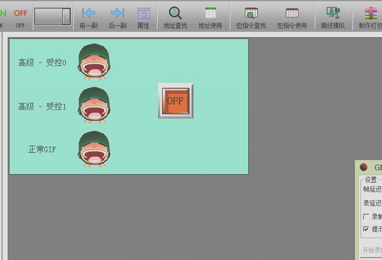 如果勾选此参数,则GIF是否运行由关联的PLC地址的有效状态决定。例程中以内部寄存器LB0测试,