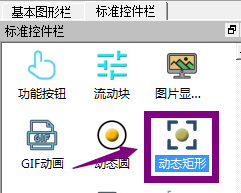 1、点击标准控件栏中的“动态矩形”,在右侧绘图区点击左键即可添加图形,如下图: