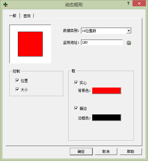 动态矩形的作用:根据寄存器数值动态移动图形的轨迹与大小变化。