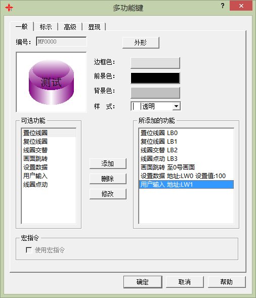 多功能键的作用:一个按钮将对应多个功能,例如:置位线圈、复位线圈、线圈交替、线圈点动、