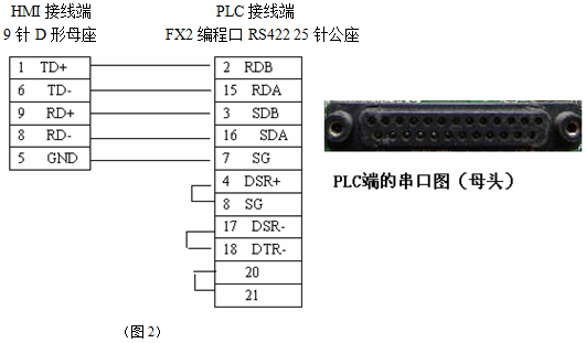 2、三菱FX系列CPU型号PLC,电缆制作图如下所示: