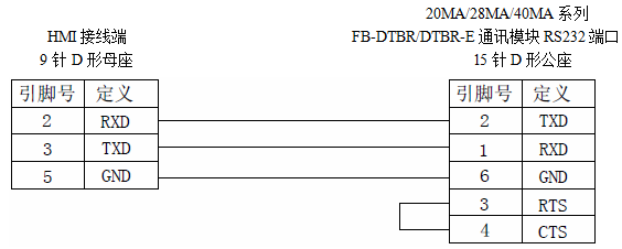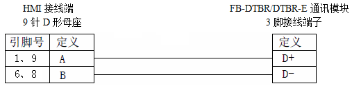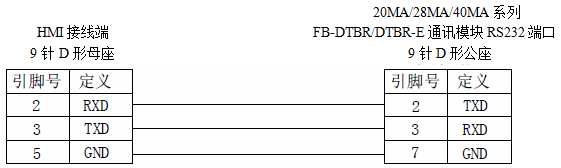 5、FB-DTBR/DTBR-E通讯模块RS232连接模式(9针D形公座):