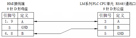 2、LM系列PLC使用RS485时,电缆制作图如下所示: