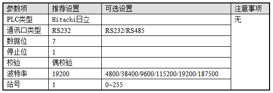 2、Hitachi日立协议默认通讯参数: