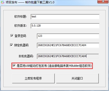 是否将USB驱动打包:如果目标电脑从未运行或安装过YKHMI系列编程软件及驱动,建议勾上此选项.