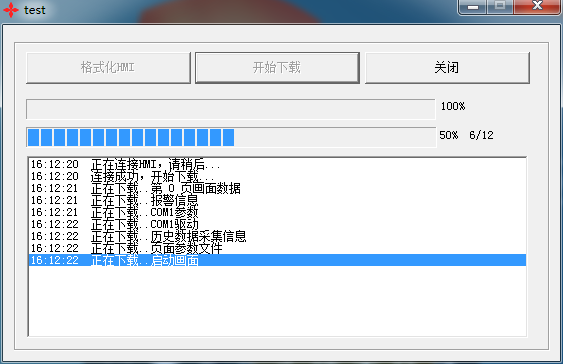 下图为批量下载工具启动成功,正在为HMI下载程序