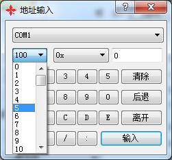 当按照上述的方法设置后,通讯口属性内的PLC地址就无效了。当用户在某控件上点击输入地址时,弹出如下图的地址输入窗口, 选择寄存器的名称的左方有一下拉菜单,点击下拉菜单所选择的数字即为PLC的【从站】地址。