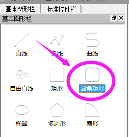 1、打开软件之后,点基本图形栏,左键单击"圆角矩形",绘图区单击左键,即可添加: