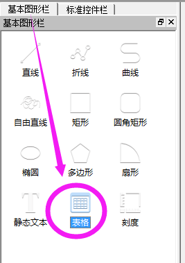 1、打开软件之后,点基本图形栏,左键单击"表格",绘图区单击左键,即可添加: