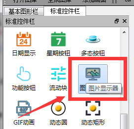 1、点击标准控件栏中的“图片显示器”,在右侧绘图区点击左键即可添加图形,如下图:
