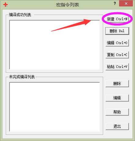 1、依次点击主菜单上面的,设定/宏编辑器,新建(CTRL+N),即可创建一个宏指令,如下图所示。
