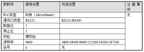 2、和泉(MicroSmart)协议默认通讯参数: