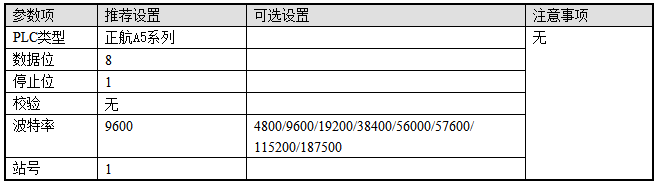 2、正航A5系列协议默认通讯参数: